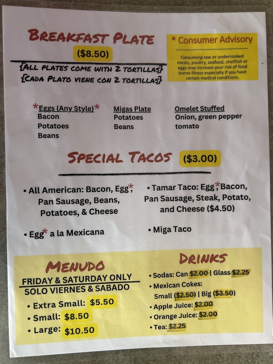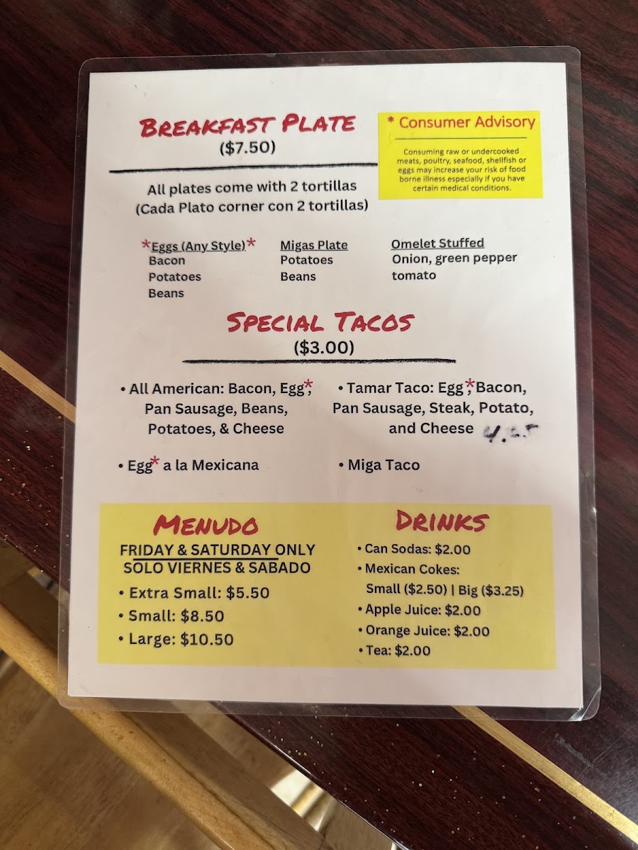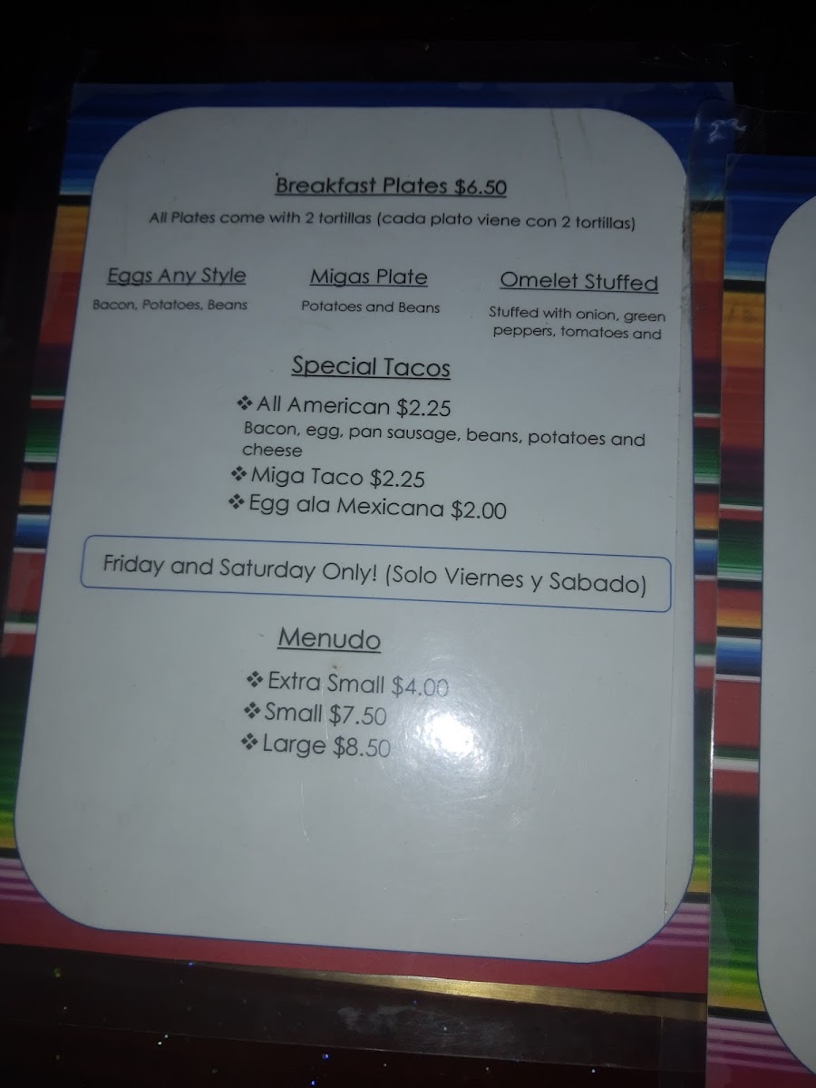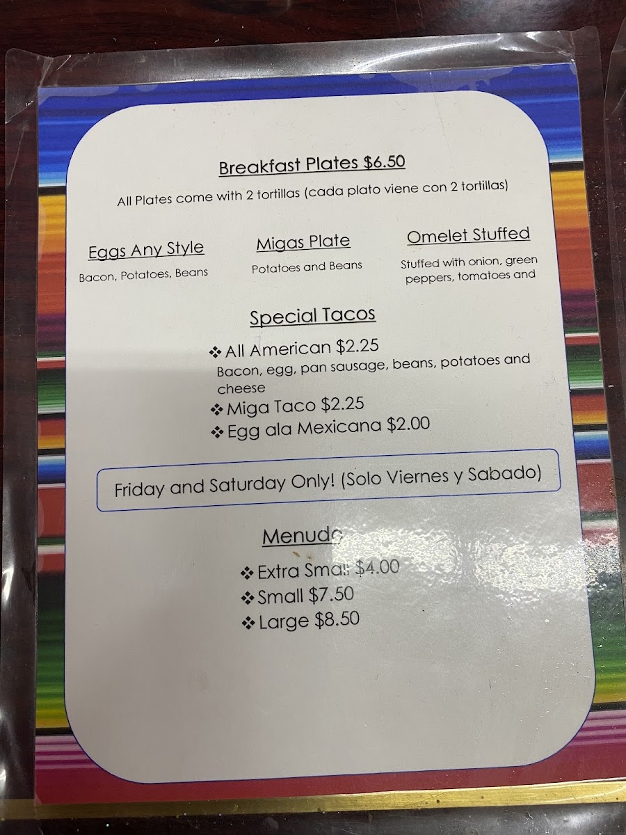 These dishes are ideal for early mornings or relaxed weekend mornings where the atmosphere feels familiar and welcoming—almost like sharing a meal cooked with care at home. The menu also includes flavorful combinations like the All American taco, which pairs traditional breakfast ingredients with a Mexican twist, and Menudo available on weekends for those seeking a more traditional, warming meal.
